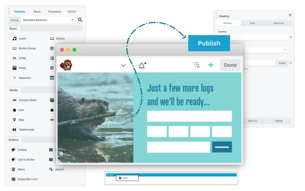 Beaver Builder Lite offers just nine basic modules. Paid plans unlock 30+ professional modules like contact forms, sliders, countdowns, and the Loop Builder for dynamic content.