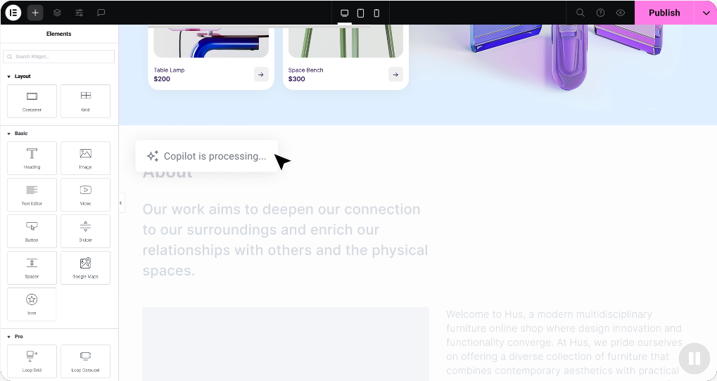 Elementor went all-in on AI. Text generation for any content block. Image creation from descriptions. AI Motion Effects, where you describe animations in plain language. The AI Site Planner automatically maps the entire website structure.